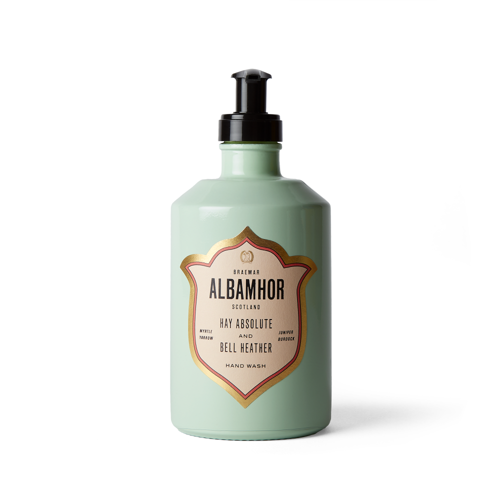 The Albamhor Body Care collection uses a unique blend of oil-infused Scottish Highland herbs and plants. With notes of Myrtle, Yarrow, Burdock, Juniper, Bell Heather, Thyme, Valerian and Rosemary, this hand wash comes in a stylish mint green bottle.