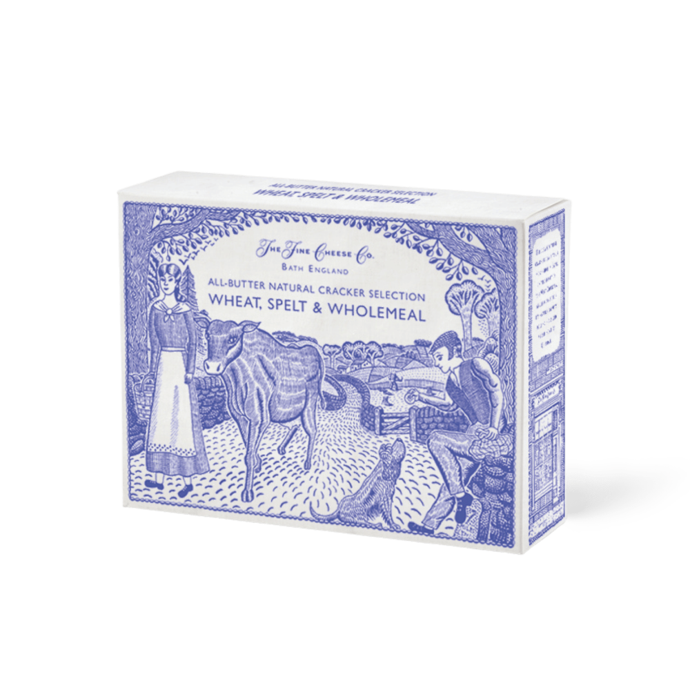 A selection of all butter crackers that are subtle enough to let any cheese shine, in an illustrated box. Includes All-Butter Wholemeal crackers, All-Butter Spelt crackers and All-Butter Wheat crackers.