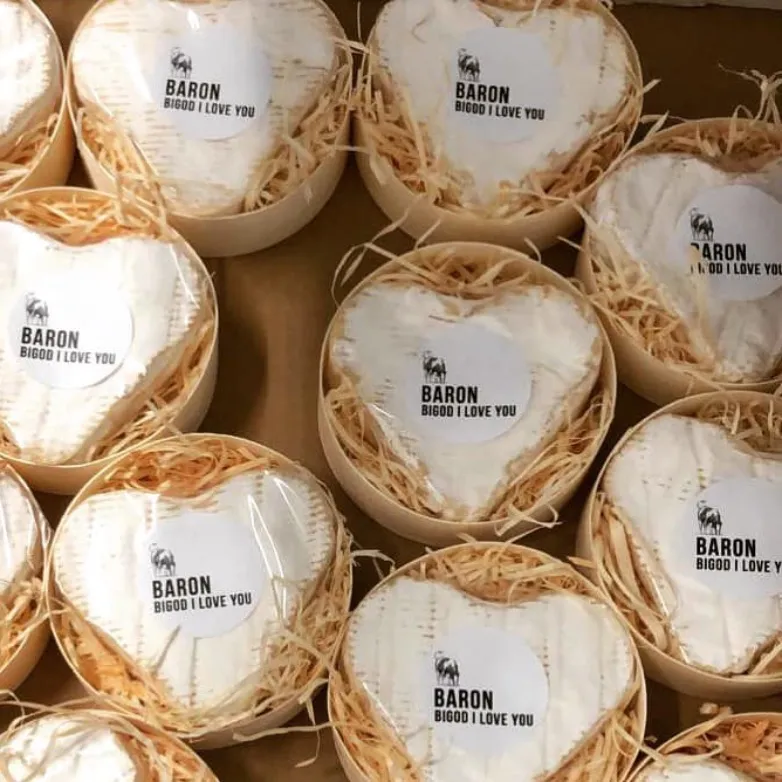 Baron Bigod is a traditional Brie-style cheese, handmade at Fen Farm from Montbéliarde cows' milk. For Valentine's Day they have created a limited heart-shaped edition of their popular cheese. With warm, earthy mushroom notes, a nutty rind and a golden citrusy centre, it sits perfectly at the centre of a Valentine's cheeseboard.