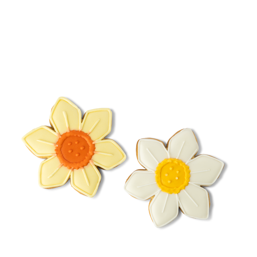 A seasonal spring favourite, this sweet pair of daffodil iced biscuits are perfect to share over a cup of tea this Easter, or with Mum this Mother's Day.