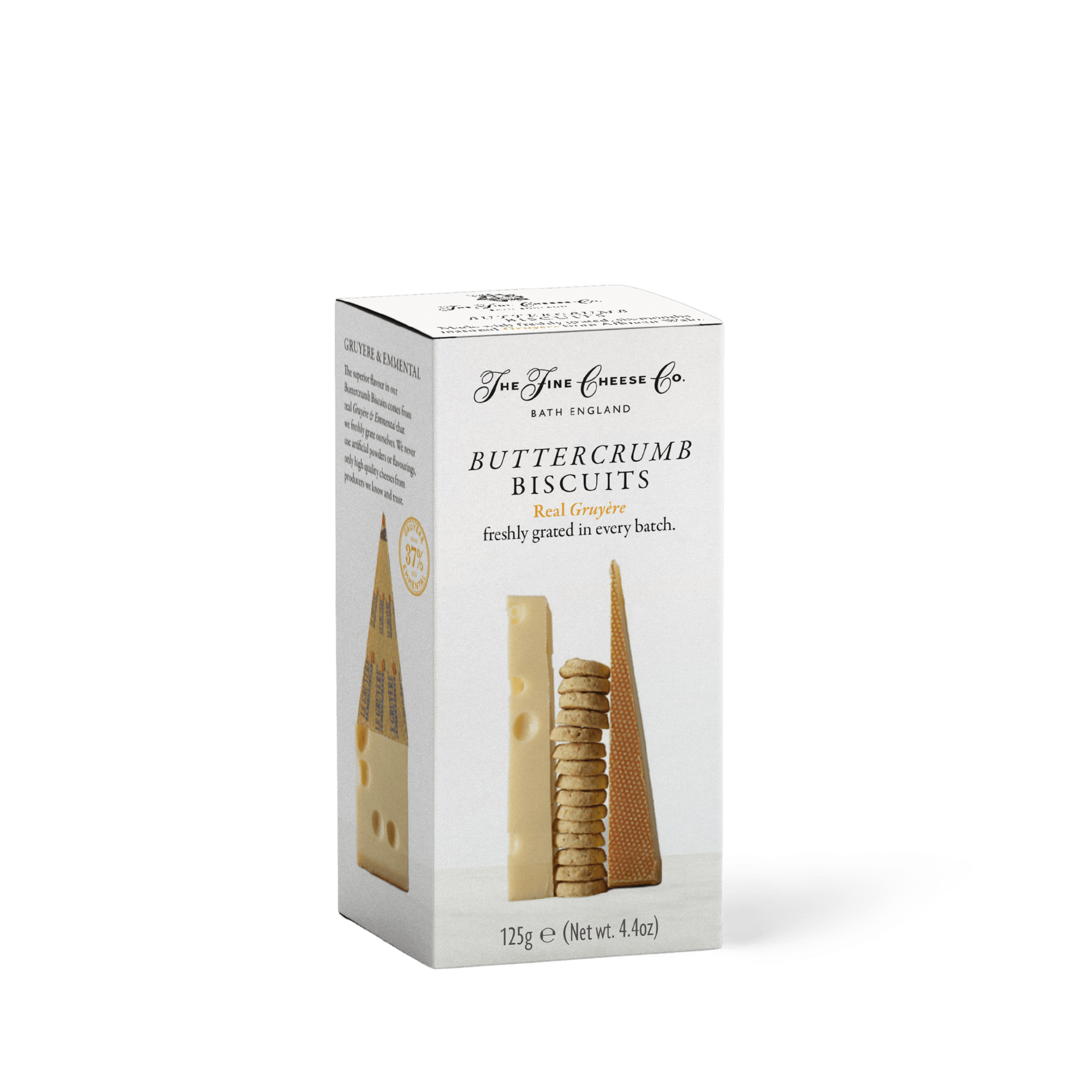 Crumbly, rich biscuits made a generous 37% of gruyére and emmental cheese that is freshly grated for every batch. Delicious by themselves, they pair with a pre-dinner drink or apéritif.