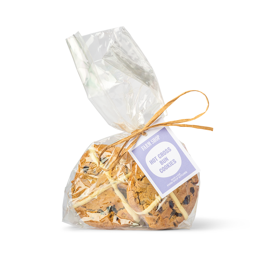 All the comforting flavours of a hot cross bun, reimagined is a chewy biscuit. Our new Hot Cross Bun Cookies are filled with mixed peel, cinnamon, nutmeg, cloves, vanilla bean, and juicy sultanas, complete with a white chocolate cross on top. Best enjoyed with a good cup of tea.