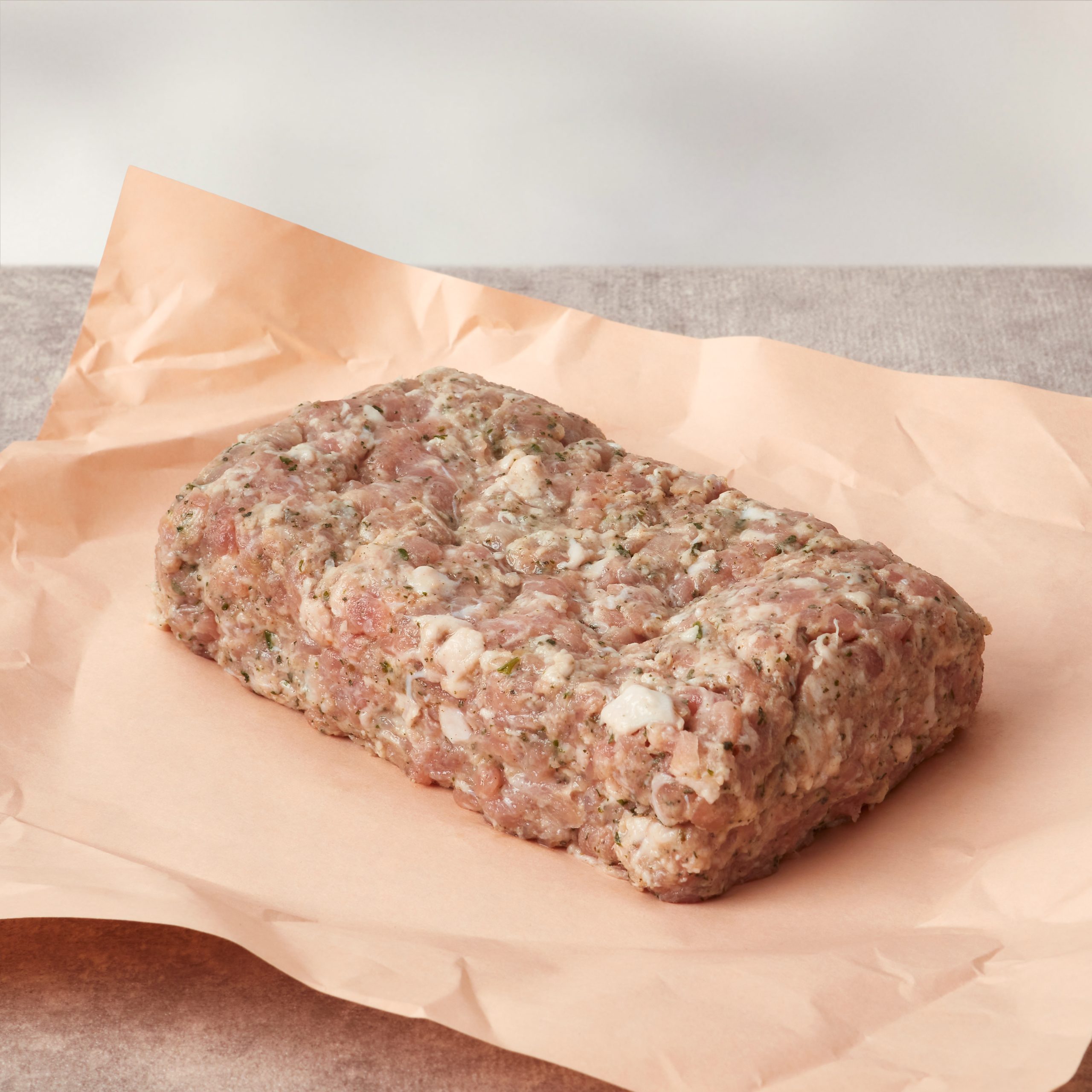 Traditional sausage meat stuffing made by hand using outdoor reared pork mince blended with aromatic sage and onion. Perfect for stuffing a bird, rolling into balls, or get creative; shape into a cake, make a stuffing tray bake, or wrap with bacon.