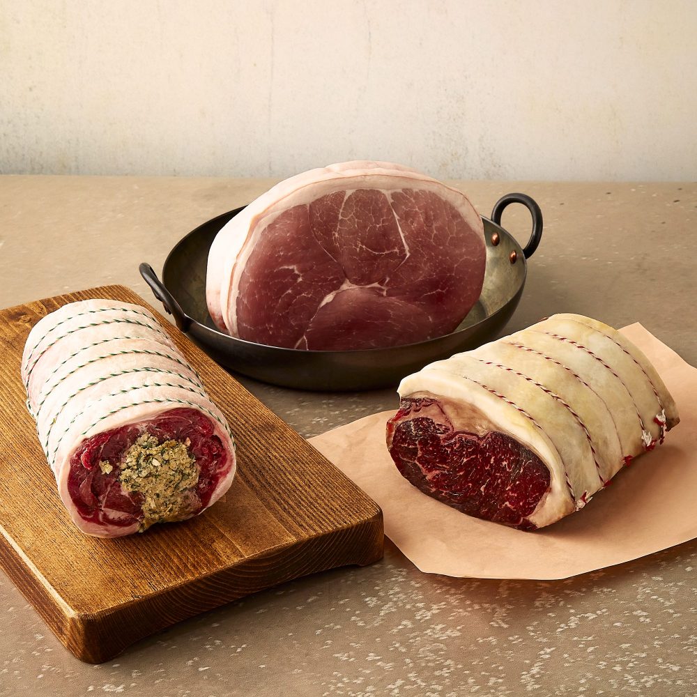 The majestic King's Box showcases premium cuts fit for royalty. Enjoy prime Beef Sirloin Joint and a Small Gammon Joint plus your choice of a prime lamb cut. Each is meticulously selected for unrivalled taste and tenderness.