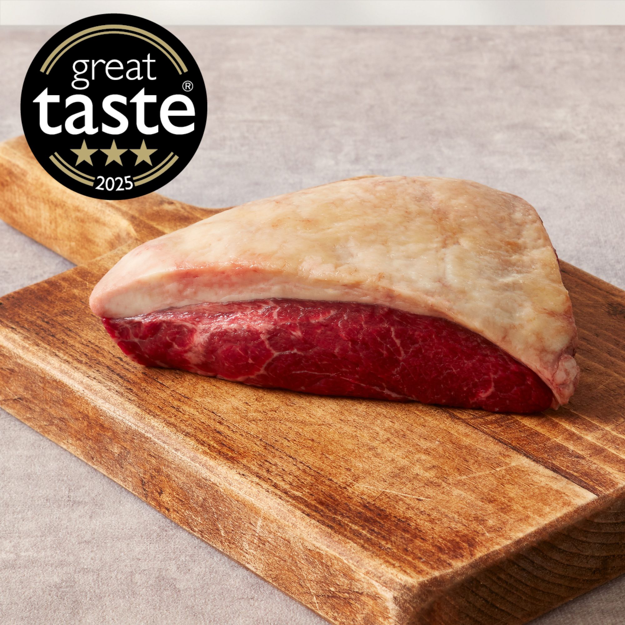 "A juicy, well-marbled joint of beef, this has a clean savoury aroma. The soft melt-in-the-mouth texture releases fabulous clean natural beef flavour, especially from the caramelised bits. The fat is buttery sweet and delicious - this beef comes from a quality animal that has lived a great life to produce great marbling through the flesh and has been hung well to help maximise the rich, savoury, umami flavour."